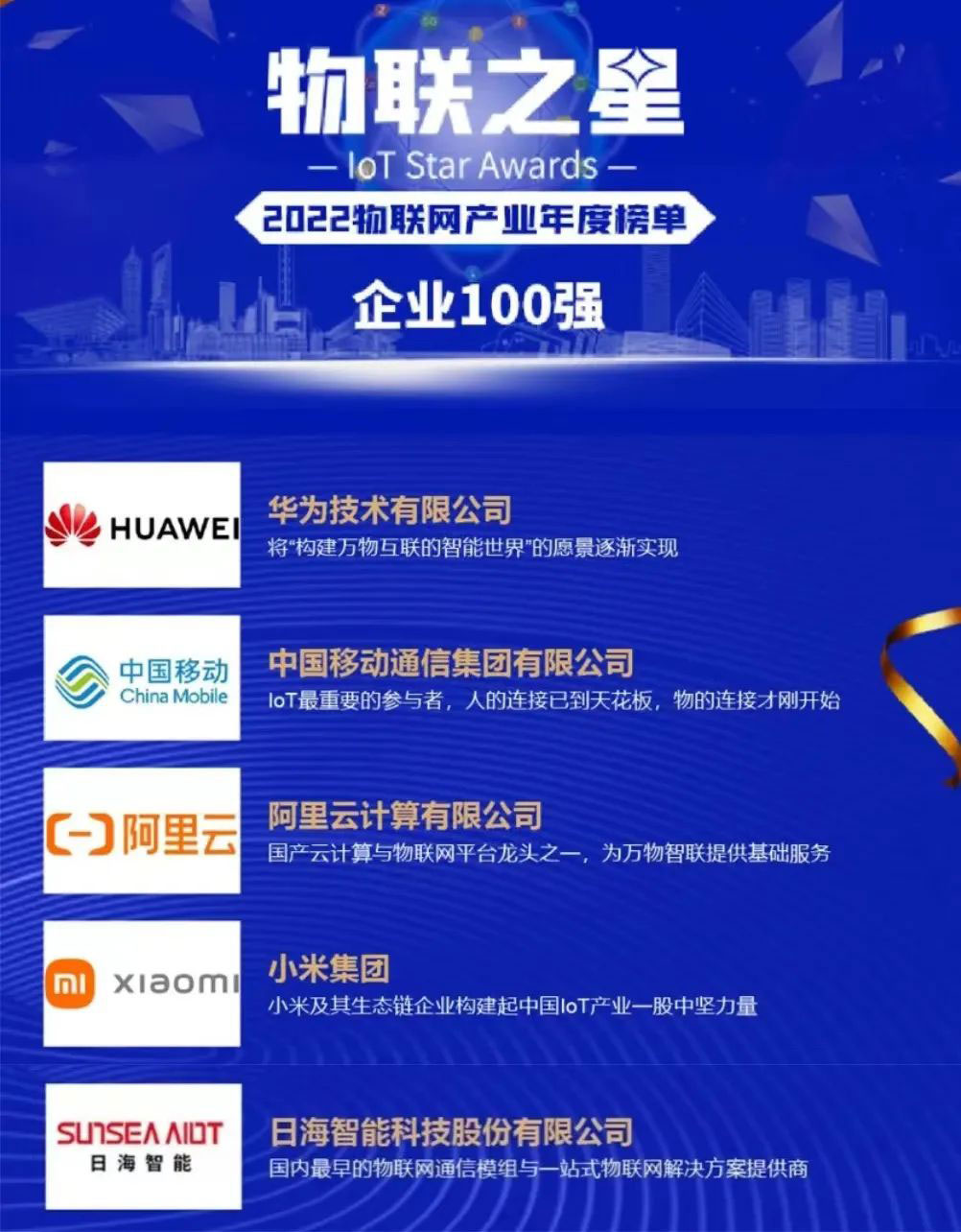 该年度榜单以公司业绩规模与人员规模较大且稳定、近三年业绩规模与净增长率表现良好、研发投入金额与占比较大并有行业影响力的新品发布、同时在物联网领域行业地位突出为四个评选标准进行严格、客观评选。飞速发展的物联网行业群雄并起,优秀企业不断涌现,350vip浦京集团公司智能脱颖而出,与华为、中国移动、阿里云计算等知名企业齐头并进、共同成为中国物联网企业百强,背后是近三十年的实力积淀。